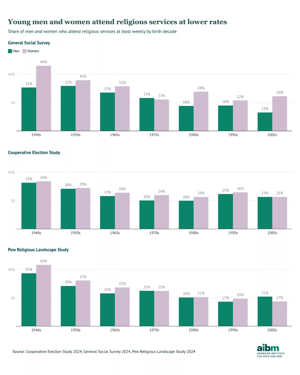 Against this longstanding backdrop, a wave of recent headlines has captured public attention. In September 2024, the New York Times ran a story titled, “In a First Among Christians, Young Men Are More Religious Than Young Women”. Just weeks ago, the same reporter, Ruth Graham, published a lengthy piece on the rise of Orthodox Christian converts, noting that Orthodoxy is attracting “energetic new adherents, especially among conservative young men.”